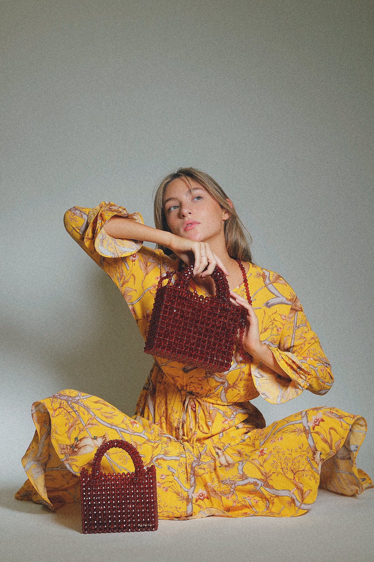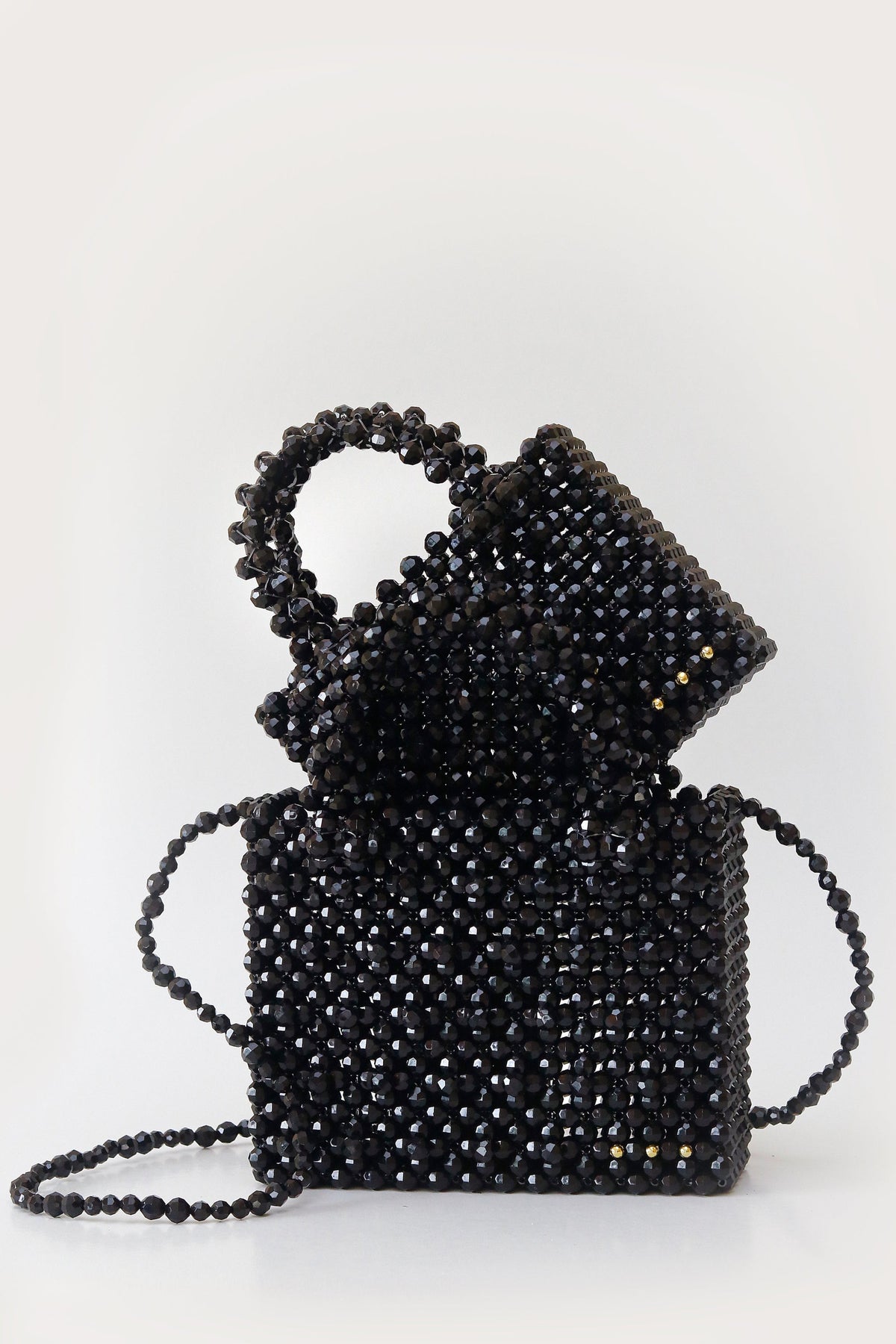 Bolsa rígida con doble asa y correa larga fija.