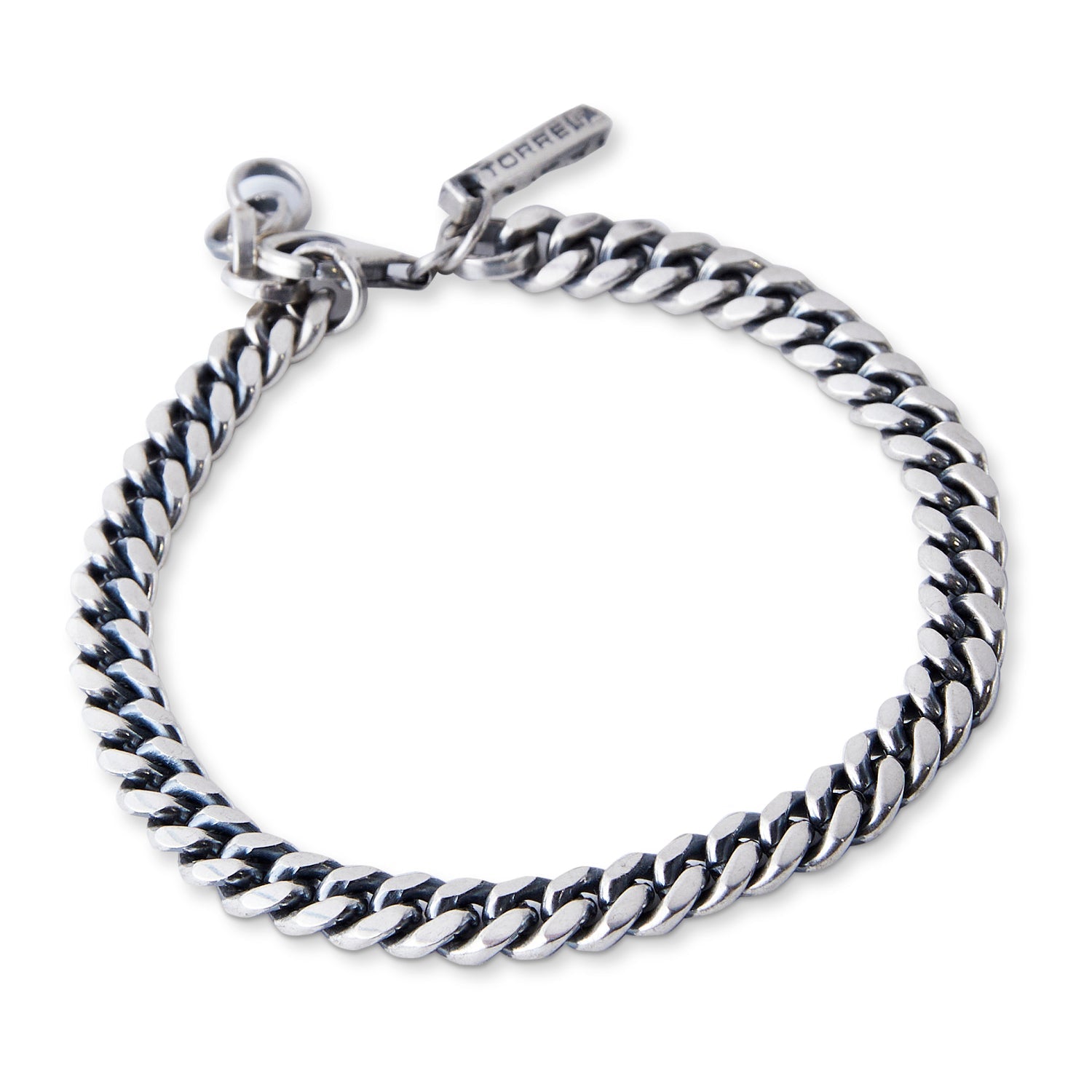 Pulsera ajustable de eslabón estilo cubano. Elaborada en plata .925 con acabado parcialmente oxidado.